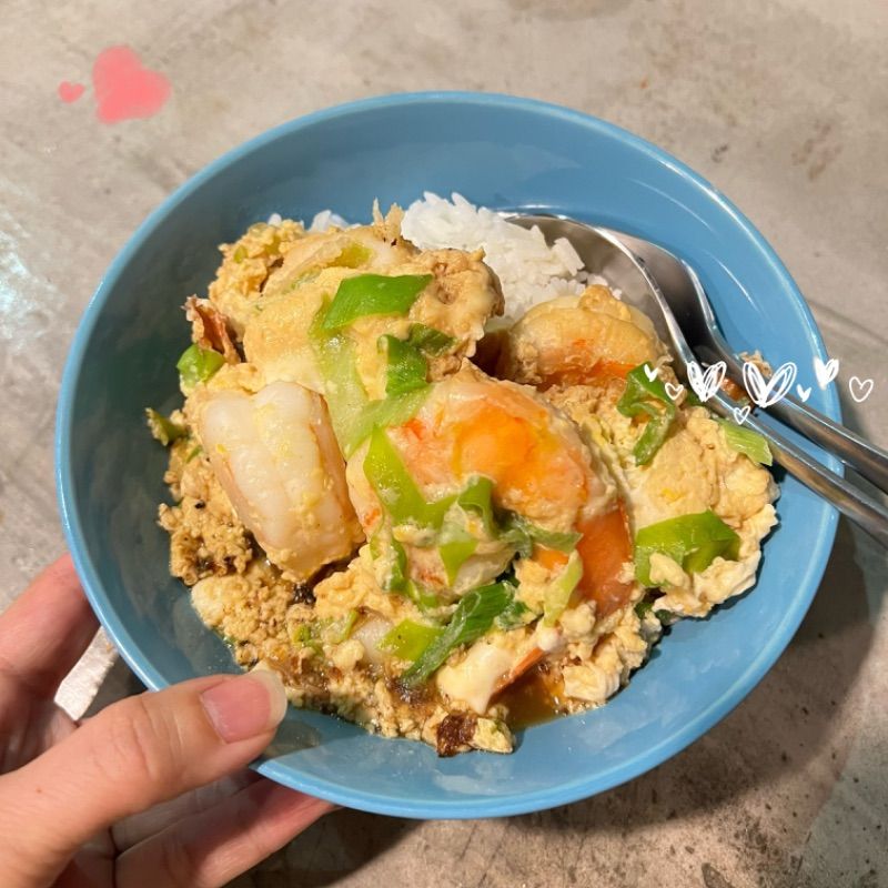 ข้าวหน้ากุ้งใส่ไข่ 🤭♥️