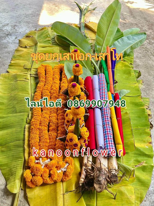 เทียนพรรษายกเสาเอก ยกเสาเอกเสาโท ชุดลงหลุมเสาเอก ชุดลงหลุมเสาเอกเสาโท ต้นอ้อย ต้นกล้วย ต้นมะพร้าว ใบไม้มงคล9ชนิด ใบไม้มงคลพิธี ชุดบวงสรวงยกเสาเอก