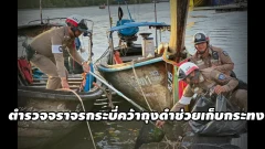 ตำรวจจราจรกระบี่งดจับหมวก คว้าถุงดำช่วยเก็บกระทง ลอยเกลื่อนปากแม่น้ำ