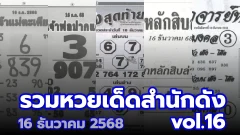 เลขเด็ด เลขมาเเรง เลขดัง "รวมหวยเด็ดสำนักดัง vol.16" งวดวันที่ 16 ธันวาคม 2568