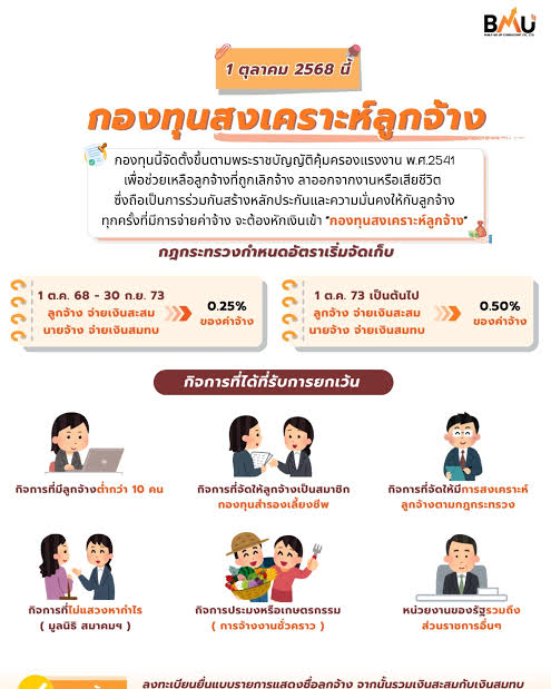 Pattie the Heartlessกองทุนสงเคราะห์ลูกจ้าง จะ เริ่มบังคับใช้จริงในวันที่ 1 ตุลาคม 2569 แทนที่จะเป็น 1 ตุลาคม 2568 เนื่องจากมีการเลื่อนกำหนดการออกไปอีก 1 ปี กองทุนนี้จะทำหน้าที่เป็นหลักประกันทางการเงินให้แก่ลูกจ้างกรณีออกจากงานหรือเสียชีวิต โดยจะมีการหักเงินสะสมจากลูกจ้าง และนายจ้างสมทบในอัตรา 0.25% ของค่าจ้าง ในช่วง 5 ปีแรก (1 ต.ค. 69 - 30 ก.ย. 74) และจะปรับเพิ่มเป็น 0.50% ตั้งแต่ 1 ตุลาคม 2574 เป็นต้นไป