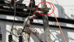 น้องเอ็ดดู ตกใจเสียงประทัดฉลองปีใหม่ ติดบนเสาไฟฟ้าแรงสูงลงไม่ได้