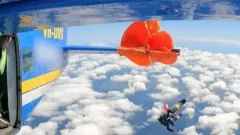 คลิประทึก! นักกระโดดร่มรอดหวุดหวิดเมื่อร่มชูชีพพันติดกับหางเครื่องบิน